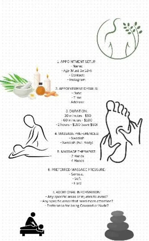 Relax Rejuvenate and Recharge💆🏽♂💦 My intimate massage therapy sessions are designed to awaken your senses, melt away stress, and reconnect you with your body’s deepest desires. My services are Discreet! Personalized! Unforgettable! ✅Party FAVORS🍠are AVAILABLE! ✅NURU and DEEP TISSUE🙌🏽 ✅HAPPY ENDING SPECIAL👅 ✅PRIVATE DANCE🤸🏽♀ 🚫NO LOW BALLERS💰 🚫NO POLICE 🚫NO ANAL or BARE DONT ASK!!!!